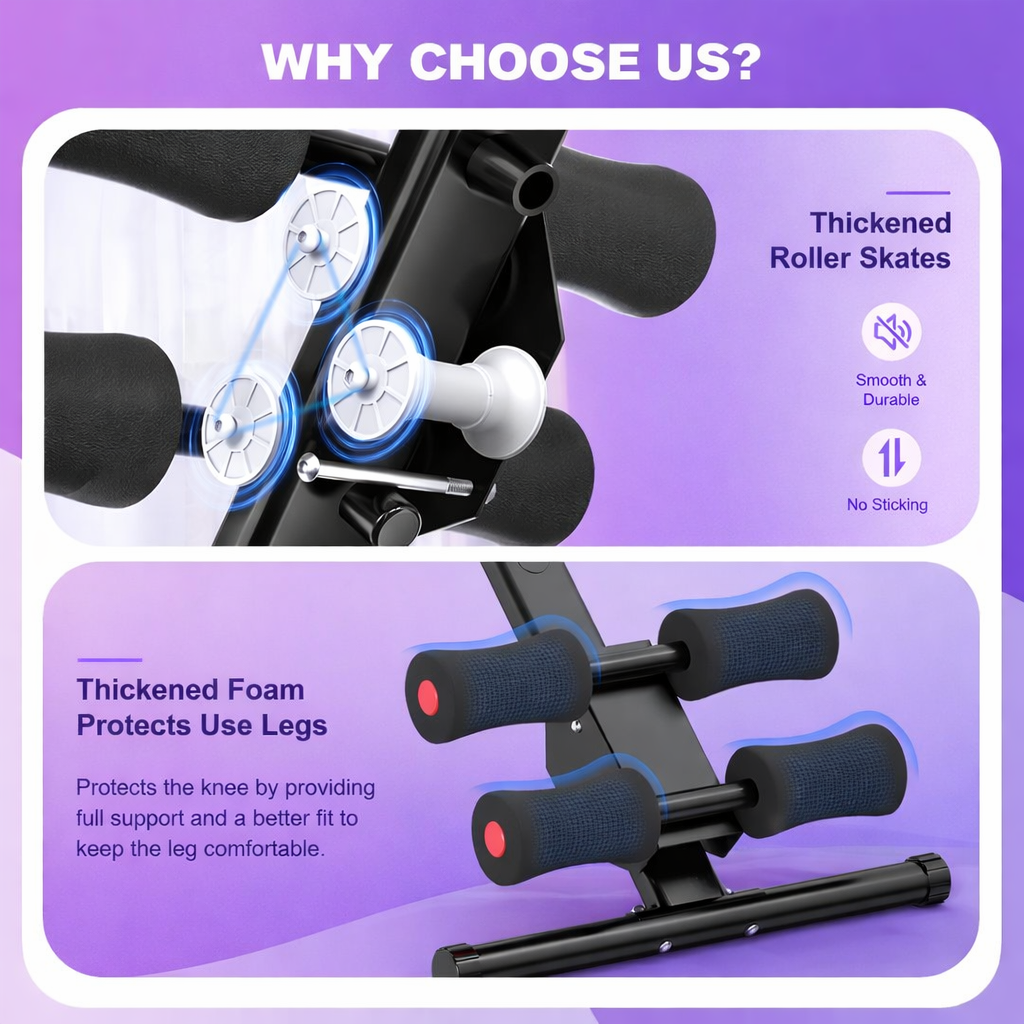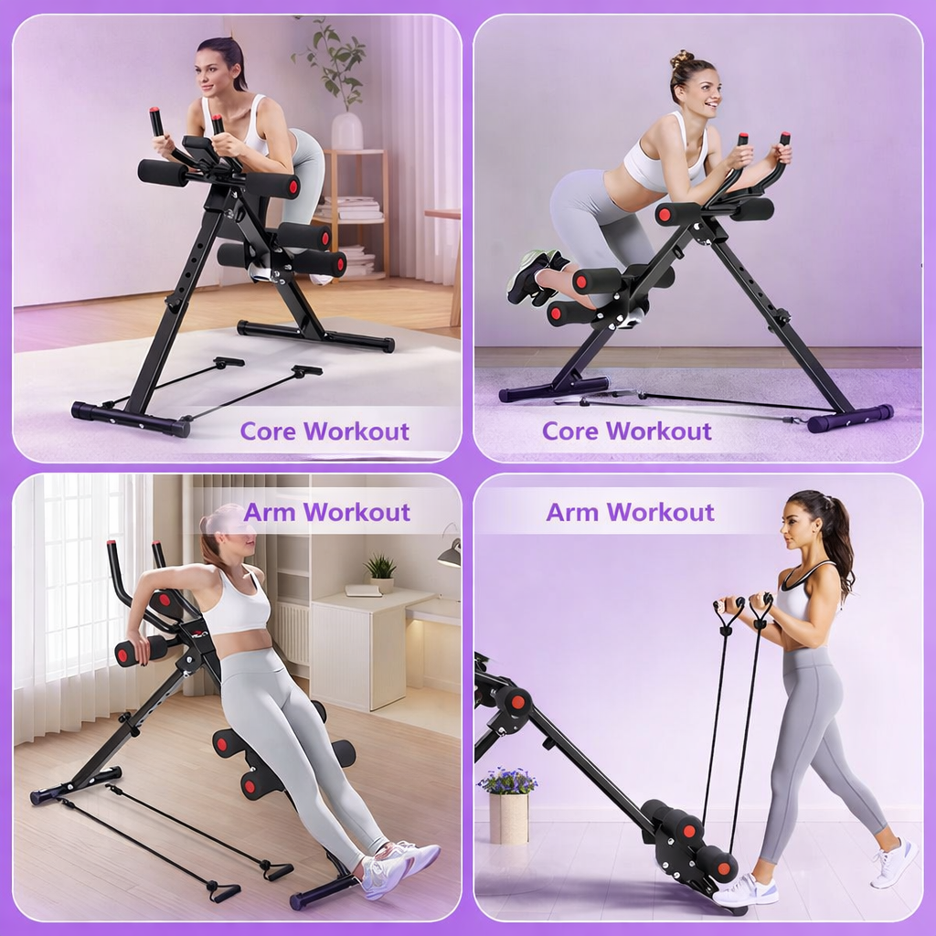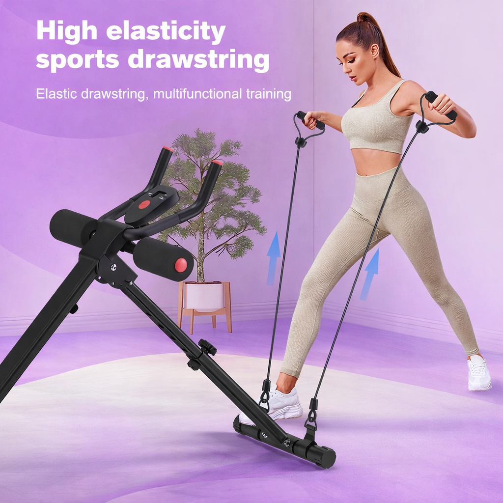 This compact adjustable ab trainer is a versatile home fitness machine designed to strengthen your core and support full-body workouts. Engineered with a reinforced steel frame for stability and durability, it supports high weight capacity while remaining compact enough for small spaces. With multiple height settings and incline levels, you can easily adjust the intensity to match your fitness level. Thick padded rollers enhance comfort, and the built-in LCD monitor tracks your reps and workout time, helping you stay consistent and motivated.